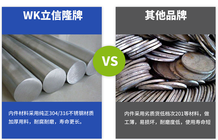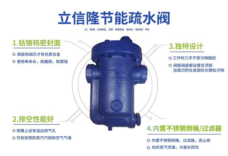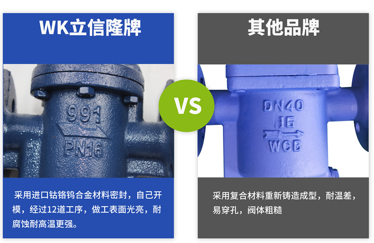 WK立信隆疏水閥內(nèi)件材料采用采用進(jìn)口鈷鉻鎢合金材料密封,自己開模,經(jīng)過12道工序,做工表面光亮,耐腐蝕耐高溫更強(qiáng)。純正不銹鋼材質(zhì),加厚用料,耐腐耐磨,壽命更長(zhǎng)。