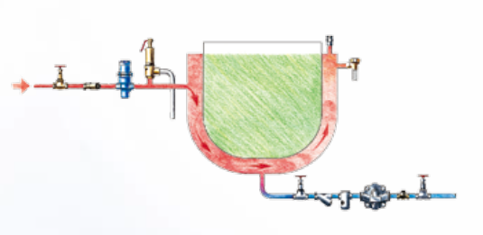對(duì)于帶溫度控制的熱交換器,浮球疏水閥是變負(fù)荷工況的理想選擇。起機(jī)階段空氣迅速排放,系統(tǒng)升溫迅速。