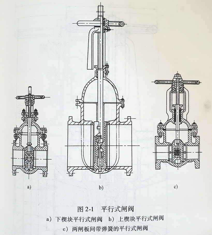 平行式閘閥的兩密封面與管道軸線相垂直,即兩個密封面相互平行的閘閥,如圖2-1所示。