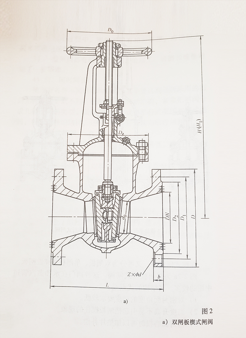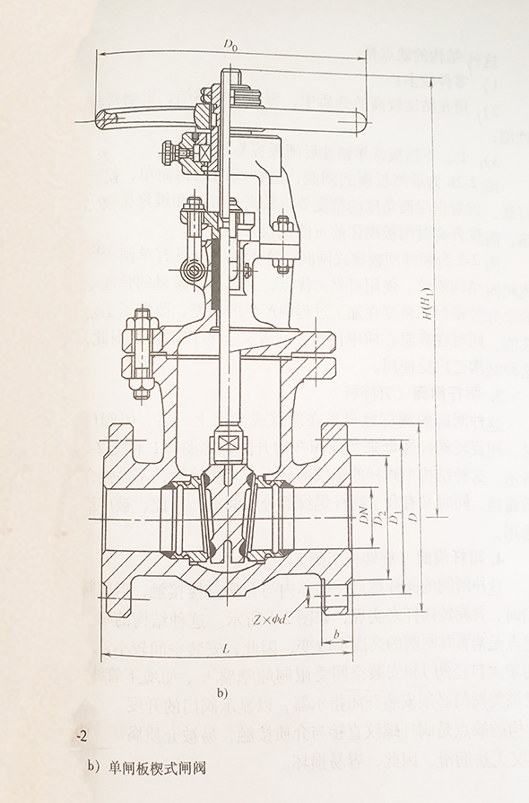 圖2-2b為單閘板楔式閘閥,這種閥門結(jié)構(gòu)簡單,使用可靠,但對密封面角度的精度要求較高,加工和維修比較困難,溫度升高時閘板楔住的可能性較大。