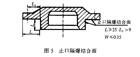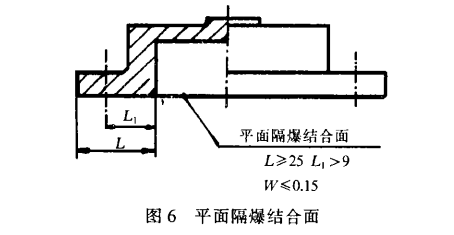 圖6為處發(fā)送器后端蓋上的平面隔爆結(jié)合面。在設(shè)計過程中應(yīng)保證隔爆結(jié)合面有效長度L和接合面間隙W,L表示螺孔中心線到防爆面的距離。