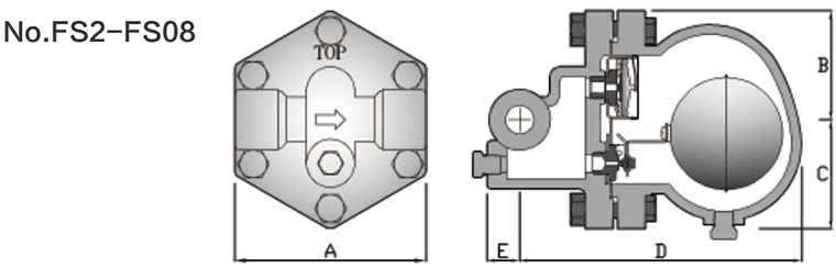 - 頂蓋上具有檢查孔,可另加裝檢查凡爾,可立知該疏水閥正常與否。