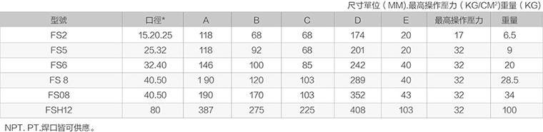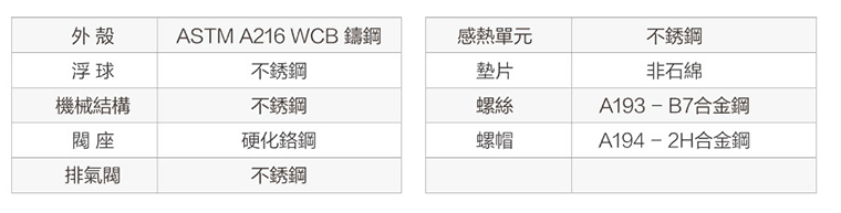 - 零件采用不銹鋼及硬化鈷鋼閥座,耐磨抗蝕。