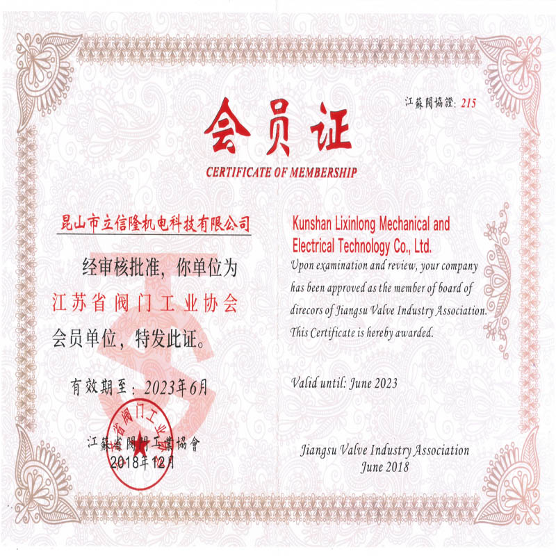 恭喜昆山立信隆機(jī)電科技有限公司成功入駐江蘇省閥門工業(yè)協(xié)會(huì)